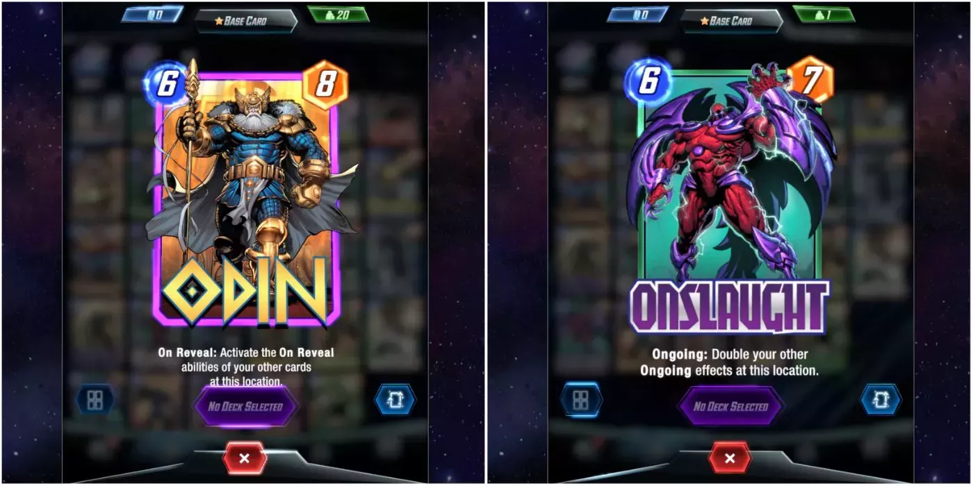 Con la aplicación correcta, ambas cartas pueden ser grandes protagonistas de la ronda final. OdÃn puede mejorar cartas de revelación como Spider-Woman, White Tiger y Jessica Jones, pero Onslaught puede causar un gran caos al potenciar a Iron Man, Klaw y Blue Marvel.