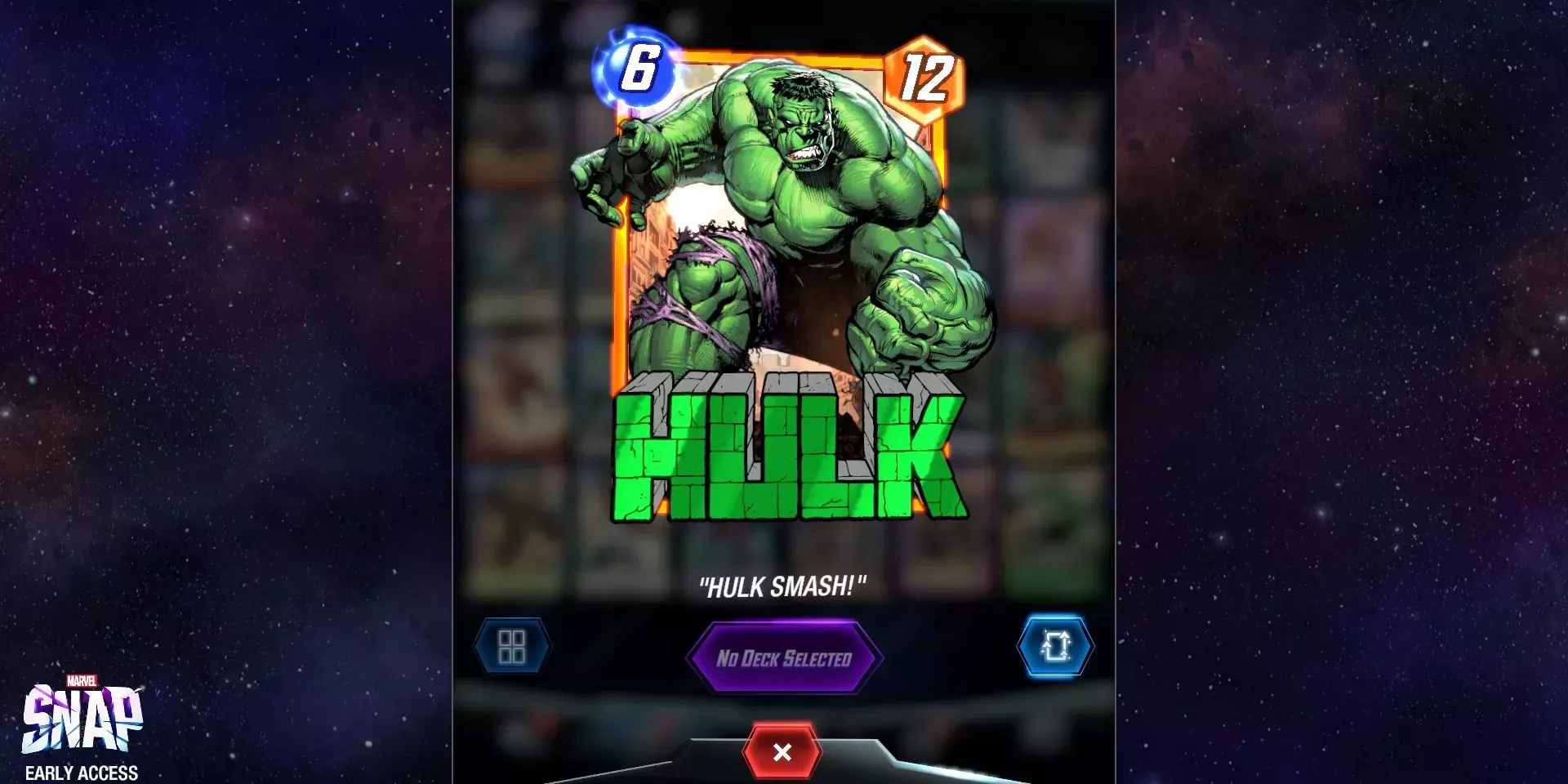 Puede haber innumerables cartas divertidas con las que jugar en las últimas rondas, con sus intrincadas habilidades y la estrategia que implica jugarlas correctamente, pero a veces lo que se necesita es un "Hulk Smash". Hulk es una carta de 6 costes que inflige la friolera de 12 puntos de poder.