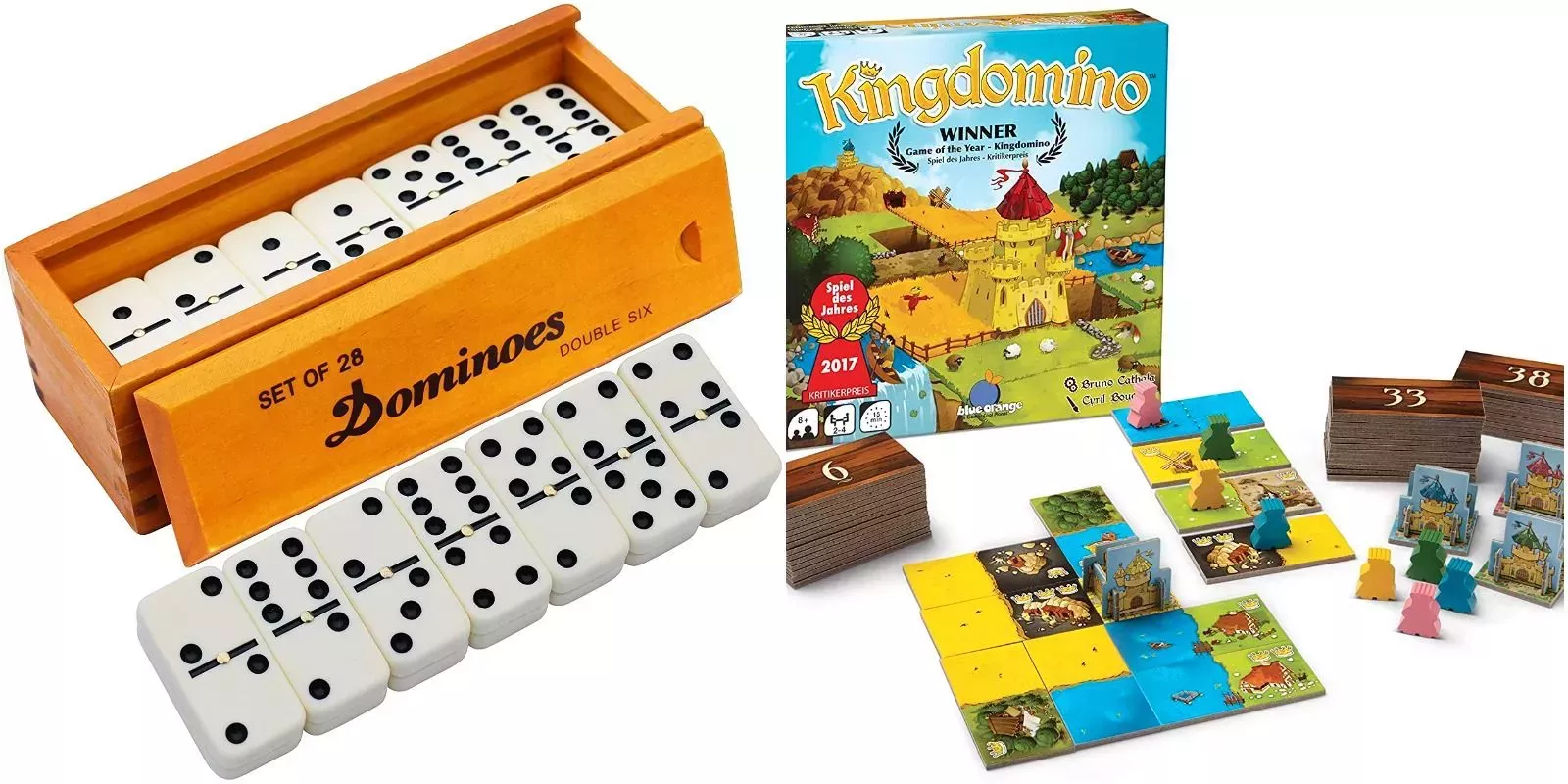 El juego moderno, Kingdomino, implementa este mismo concepto al tener fichas de dominó únicas en el juego. En lugar de pepitas en cada lado, las fichas de dominó en Kingdomino tienen diferentes tipos de terreno que deben conectarse. Los jugadores utilizan estas fichas de dominó para crear el mejor reino posible y ganar la mayor cantidad de puntos.