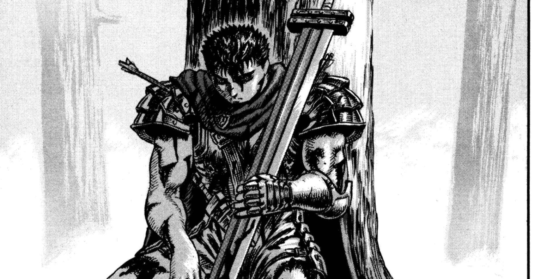 Tras quedarse atrás para que Casca pueda escapar, Guts se enfrenta en solitario a una enorme banda de mercenarios Tudor. En una señal de lo que está por venir, Guts atraviesa sin piedad al grupo enemigo con su enorme espada hasta que se ve rodeado por casi un centenar de cadáveres.