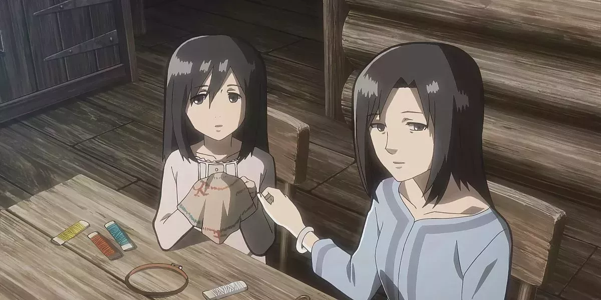 Los espectadores sólo llegan a conocer a los padres de Mikasa a través de flashbacks, ya que fueron asesinados mucho antes del comienzo de Attack On Titan. Los padres de Mikasa parecen dulces y hacen todo lo posible por proteger a su hija, lo que finalmente acaba con su vida.