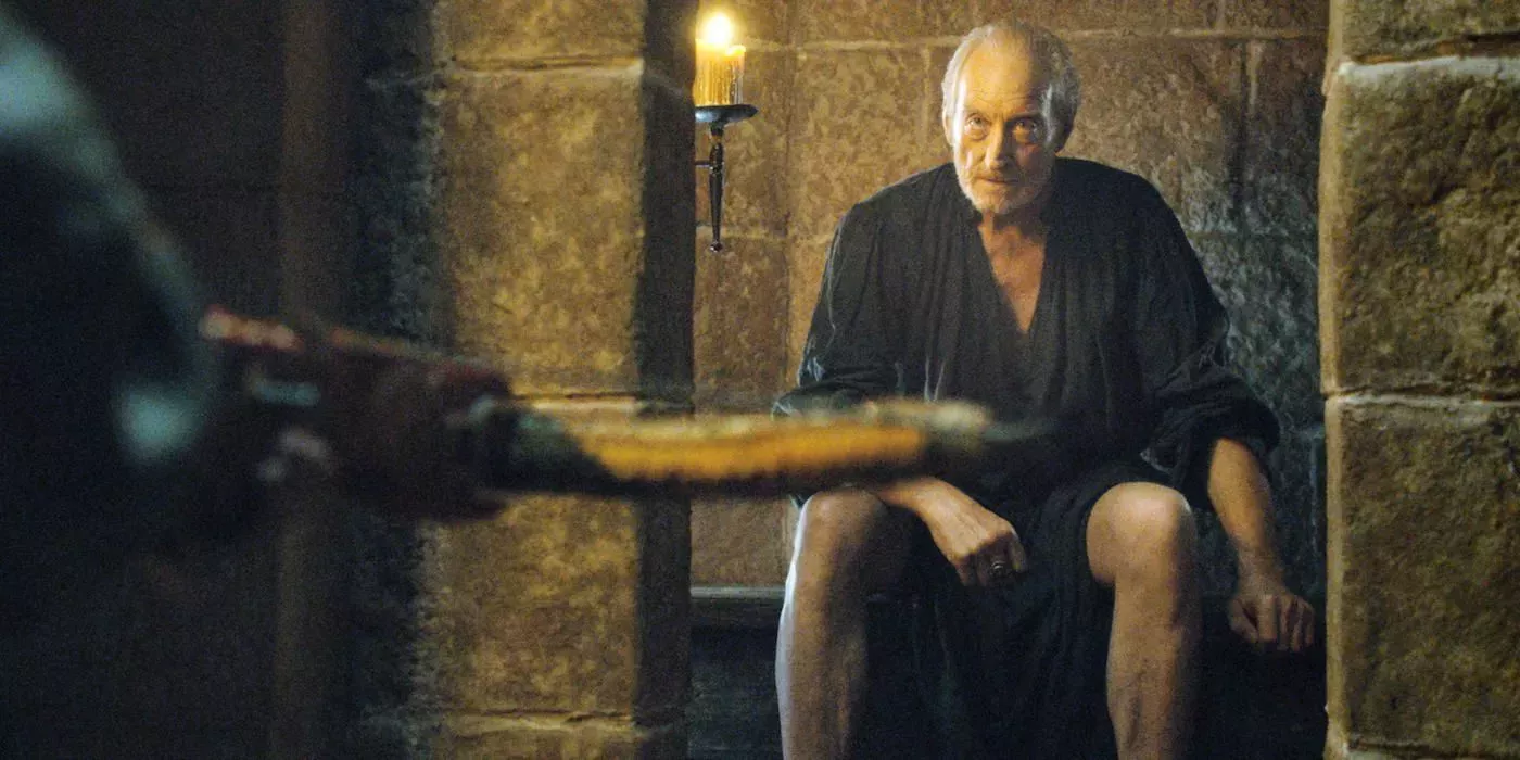 Pero tras ser liberado por su hermano Jaime, Tyrion descubre que su amante Shae ha estado teniendo una aventura con Tywin, y mata a su padre mientras aún está en el baño. De una forma morbosamente poética, la anticlimática muerte de Tywin en el baño es el resultado del envenenamiento de Joffrey en su propio banquete.