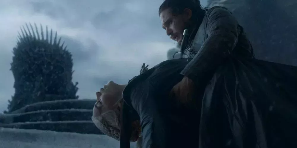 Aunque comenzó su arco de personaje decidida a romper la rueda de la opresión como Reina de los Siete Reinos, descendió a un autoritarismo violento similar al del "Rey Loco" Aerys II Targaryen. Sólo que esta vez, Daenerys actuó siguiendo la última orden de su difunto padre de incendiar Desembarco del Rey. Y mientras Jaime Lannister se encargaba de convertirse en el "Matarreyes", Jon Nieve tomaba la brutal pero necesaria decisión de convertirse en el "Matarreinas".