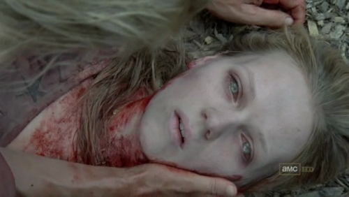 - Amy: La serie de televisión apenas comenzaba a dar sus primeros pasos y todavía no habíamos tenido ocasión de despedir a ninguno de los personajes que habíamos conocido. Amy, la joven e inocente hermana de Andrea, se convirtió en la primera víctima por la que podríamos sentir algo, y el momento en que Andrea tuvo que apretar el gatillo supuso la primera ocasión en la que tomamos conciencia que esta serie tomaría nuestro corazón en un puño.