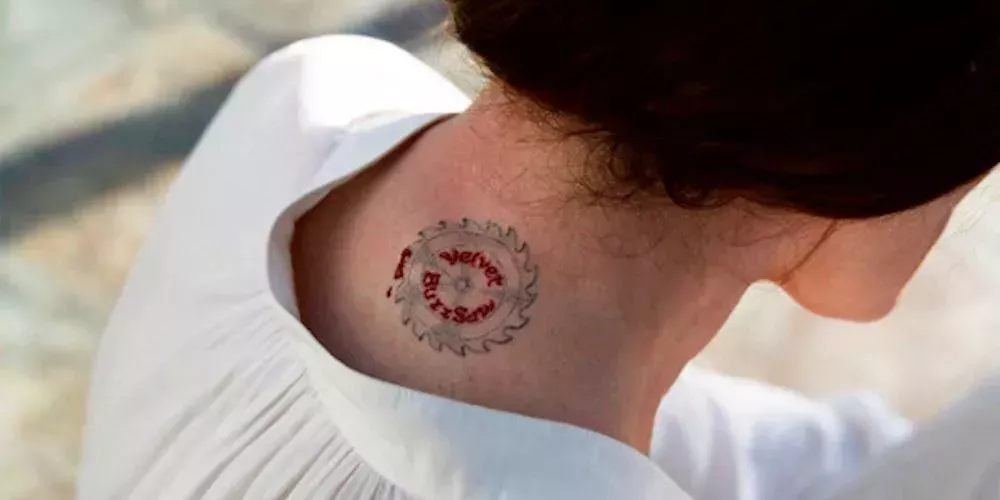 Uno de los ejemplos más ridículos de las reglas poco estrictas que rigen Velvet Buzzsaw es cuando el tatuaje de la sierra circular de Rhodora parece "cobrar vida" y atravesar su cuerpo, matándola. Cada uno de los asesinatos de Velvet Buzzsaw sigue sus propias reglas, pero éste es especialmente inesperado y forzado.