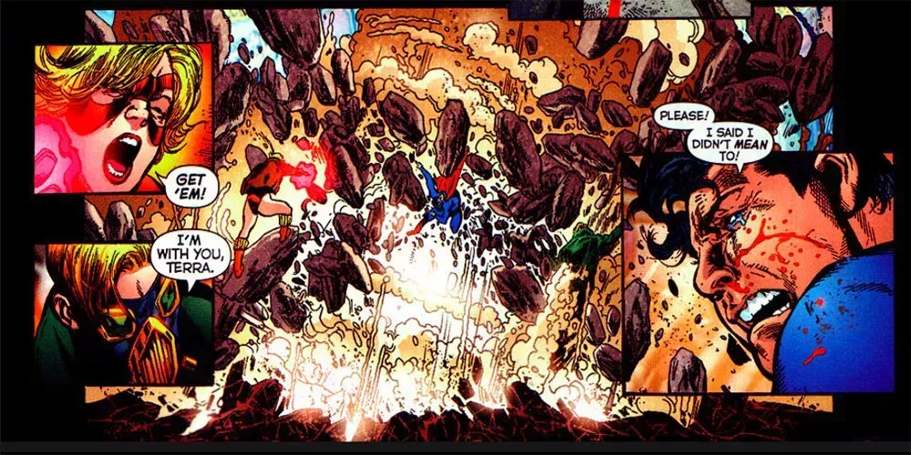 Los héroes inundan el tramo de carretera ahora arruinado en un esfuerzo por contener a Superboy. En su rabia por ser visto como el malo, Superboy destruye la cabeza de Pantha, vivisecciona a Wildebeest y asesina a un puñado de otros héroes de la lista D en los que nadie ha pensado desde entonces. De todos los momentos que rompen el carácter en la historia de los superhombres, estos asesinatos brutales y sin sentido están entre los peores.