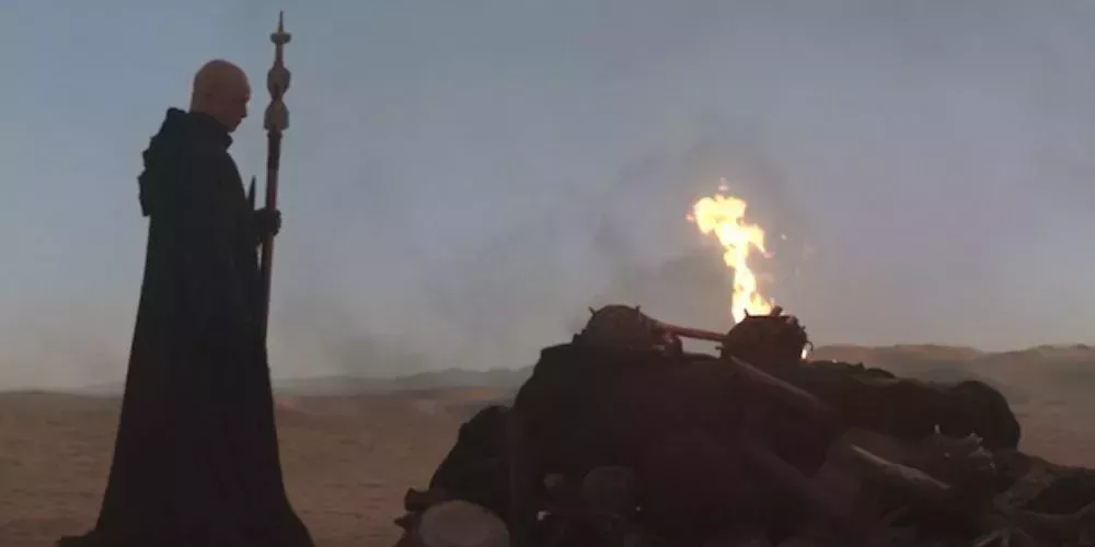 Tras salvar la vida de un niño Tusken, Boba es adoptado como miembro de la tribu. Mientras intenta ayudar a los Tusken con el Sindicato Pyke, Boba descubre que su nueva familia ha sido masacrada. Fue realmente triste ver al cazarrecompensas hacer una pira por su familia caída.