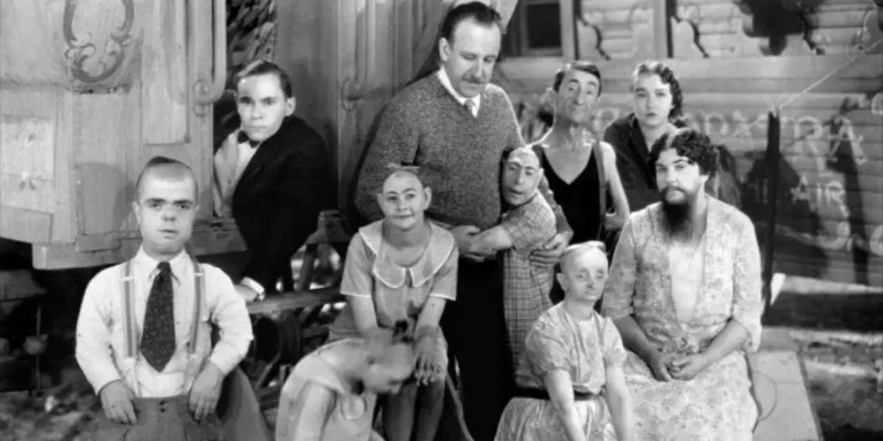 Freaks se estrenó en 1932 y trata de un grupo de artistas de feria. En la película, una trapecista se une al grupo, se casa con el líder enano y conspira para matarlo y quedarse con su herencia.