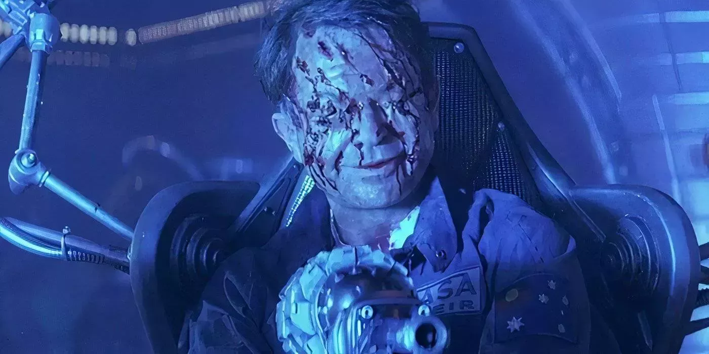 Debe de ser un alivio volver a la Tierra después de pasar mucho tiempo en el espacio. Desgraciadamente, los siete tripulantes de la Nostromo no consiguen sentirse así en el clásico de 1979, Alien. Antes de que la tripulación pueda aterrizar de vuelta a casa, descubren una cámara que contiene cientos de huevos. De uno de los huevos sale un alienígena con la cara cubierta y se aferra a un miembro de la tripulación. Más tarde, cuando parece que el tripulante se ha recuperado, el alienígena estalla de su pecho. Está suelto en la nave espacial, pero Madre, la computadora de la nave, quiere el espécimen para estudiarlo, dejando a la tripulación prescindible.