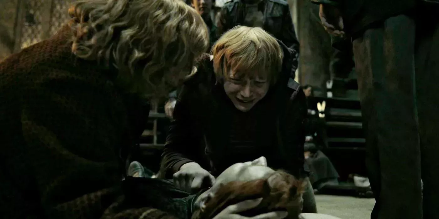 Voldemort es un aspirante a dios de la muerte, pero Harry ya está preparado para acabar con él para siempre. Gana, por supuesto, pero en el camino se pierden muchos buenos amigos. En una escena, la cámara se desplaza sobre una alineación de cadáveres que incluye a Tonks, Lupin y Fred Weasley, a quien llora su afligida familia. Toda la película es una angustia tras otra que hace llorar al público.