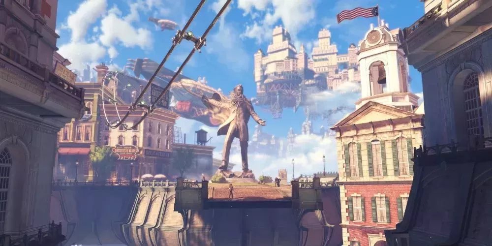 El escenariode Bioshock Infinite es la ciudad flotante de Columbia. Está construida como sÃmbolo del excepcionalismo americano y diseñada para ser un paraÃso flotante. Sin embargo, también ha heredado lo peor de los males sociales de la América de 1912. Columbia sólo es un buen lugar para vivir para muy pocas personas.