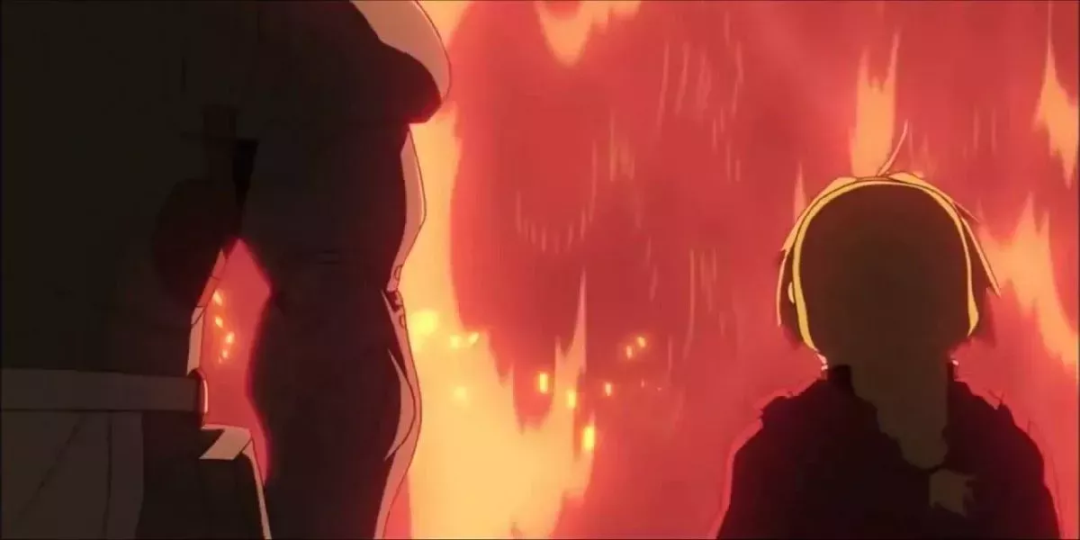 A mitad de camino de Fullmetal Alchemist: La Hermandad, Edward finalmente se encontró cara a cara con su distanciado padre Hohenheim en el cementerio de Resembool. Fue un encuentro incómodo para ambos. Por un lado, Hohenheim sospechaba que Ed habÃa quemado la casa de la familia Elric para ocultar su vergüenza.