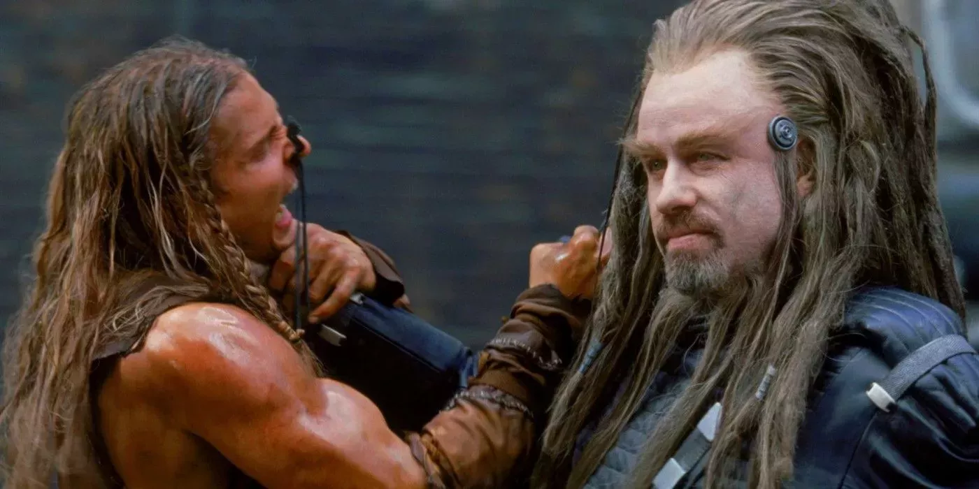 Ambientada en el año 3000, Battlefield Earth sigue a un grupo de humanos que intentan recuperar la Tierra de una raza de alienígenas humanoides conocidos como los Psychlos. La película es famosa por sus vínculos con la Cienciología, ya que se basó en una novela del fundador del movimiento, L. Ronald Hubbard, y fue producida por John Travolta, un conocido seguidor. Travolta también interpretó al agente de seguridad de los Psychlo, Terl.