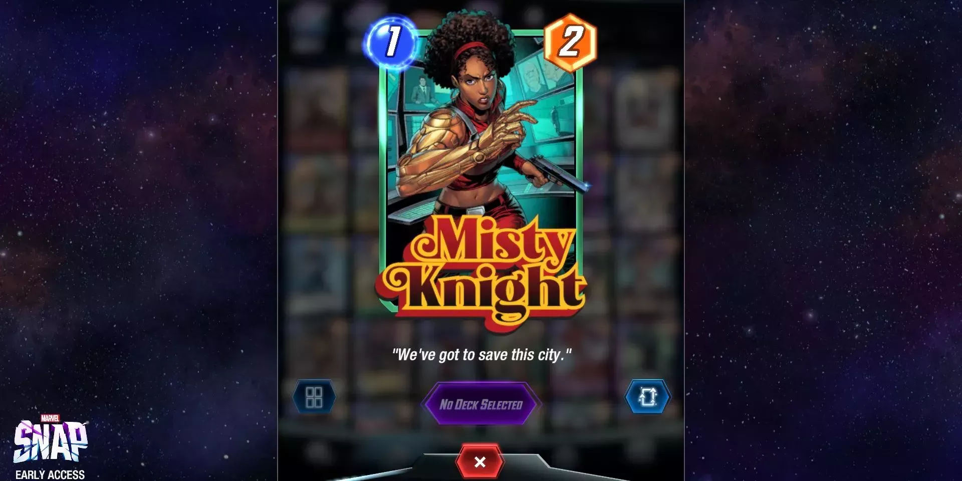 Misty Knight es una de las cartas de Marvel Snap que no ofrece ningún tipo de habilidad. Aunque es una carta de 1 coste con 2 de potencia, no hay garantÃa de que empiece en la mano del jugador, lo que la hace inútil a menos que se cumplan ciertas condiciones.