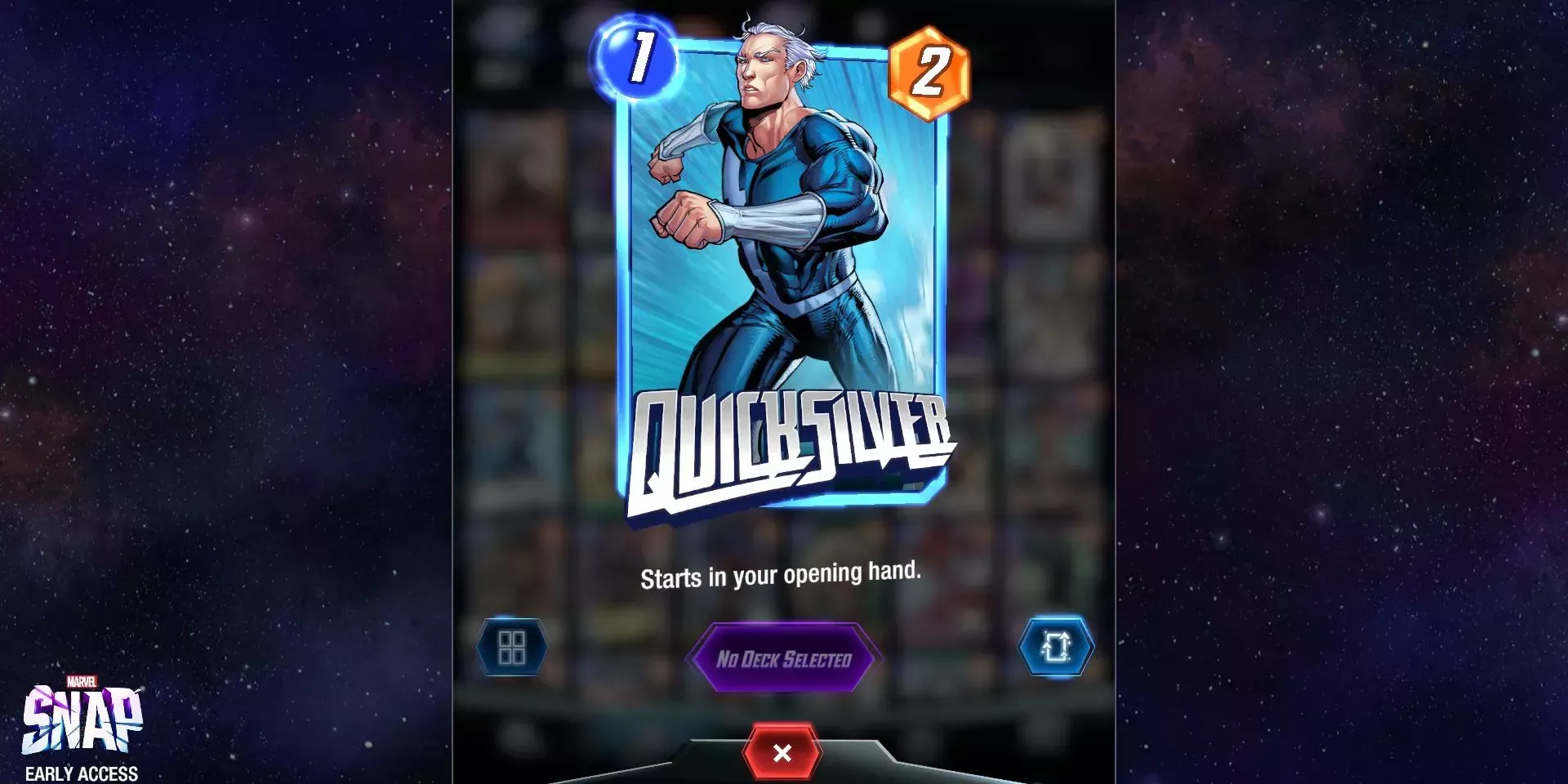 Quicksilver no es mucho mejor que Misty Knight, a pesar de tener una identidad que le da algún tipo de valor. Quicksilver está garantizado para empezar en la mano inicial del jugador, lo que significa que no habrá una incómoda primera ronda sin acción debido a que la barata carta de 2 poderes no aparezca.