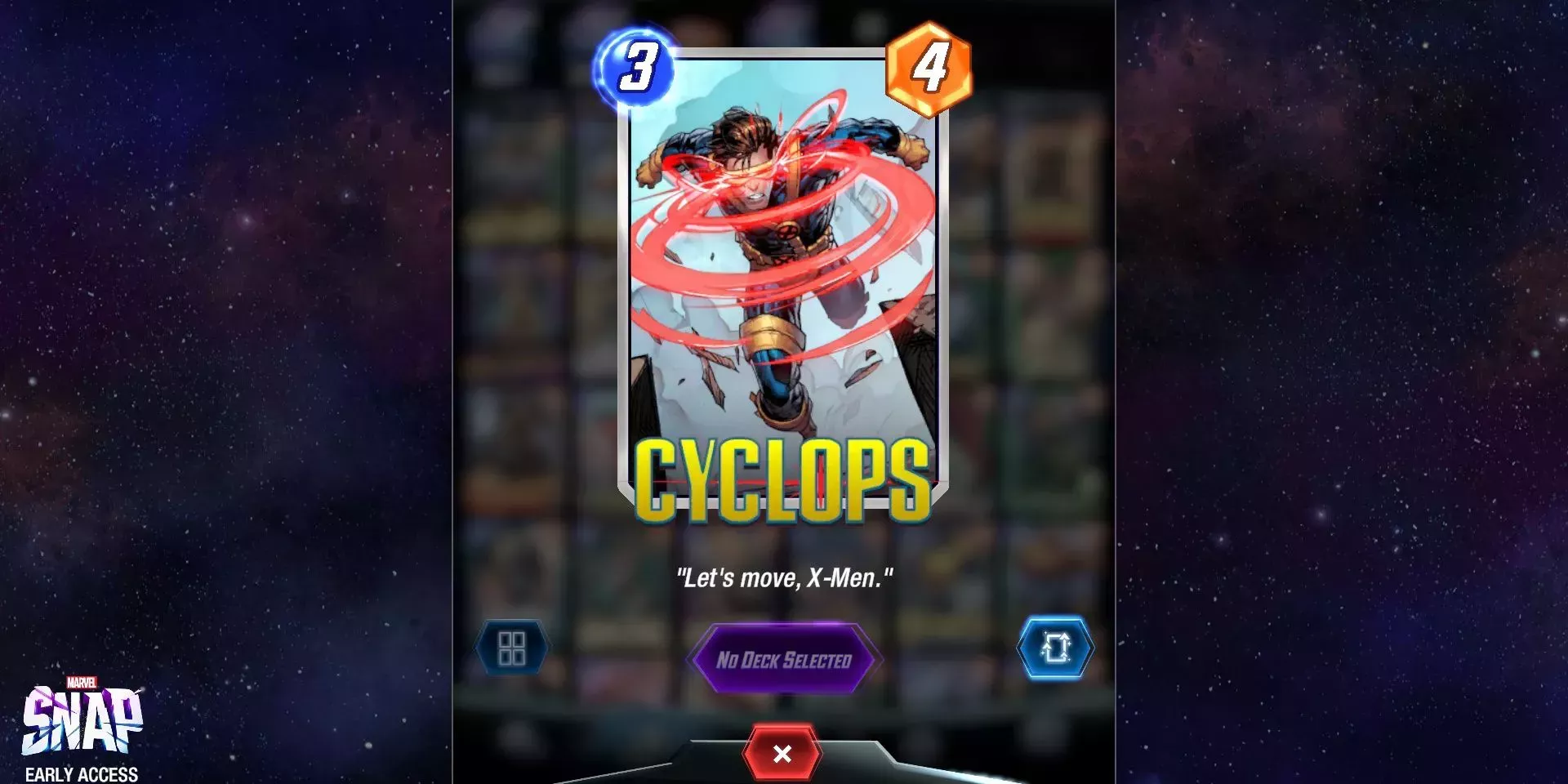 Las cartas más baratas que tampoco tienen habilidades, como Quicksilver y Misty Knight, tienen el lujo de utilizar los potenciadores de Ka-Zar, mientras que CÃclope no. Las cartas de 3 costes suelen significar que la partida abandona las fases iniciales y se adentra en el juego tardÃo, y CÃclope no ofrece nada más que su potencia.