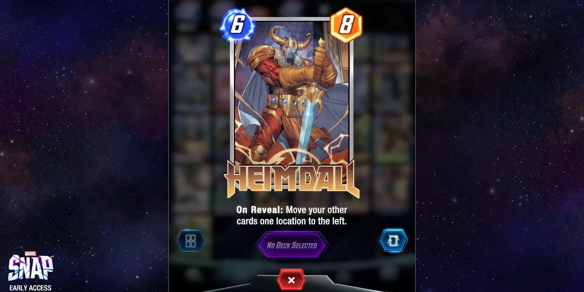 Heimdall aporta una valiosa potencia de 8 a la mesa y su habilidad, pero mover cartas a la izquierda en el último turno significa que no hay vuelta atrás. PodrÃa arruinar las ventajas de ubicación o las bonificaciones, a menos que esas cartas se hayan colocado a la derecha de su ubicación prevista en primer lugar. En pocas palabras, Heimdall es un riesgo que muchos jugadores querrán evitar.