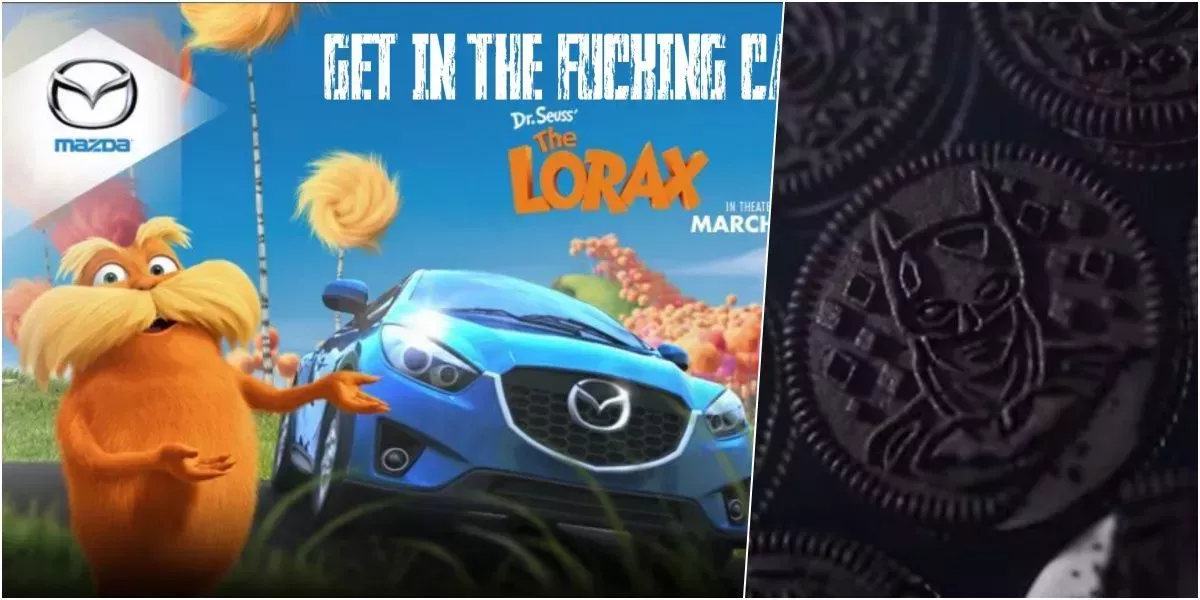 Que Mcdonald's y Oreos promocionen películas de acción o que los frigoríficos promocionen La Guerra de las Gal axias está bien hasta cierto punto, pero cuando los productos contradicen directamente el mensaje de una película es un verdadero problema. El mejor ejemplo moderno es cuando la película ecologista The Lorax promocionaba los vehículos de Mazda. Esto provocó fuertes críticas de los grupos ecologistas. La hipocresía era evidente y parecía que el Lorax había firmado un acuerdo con el Onceler.