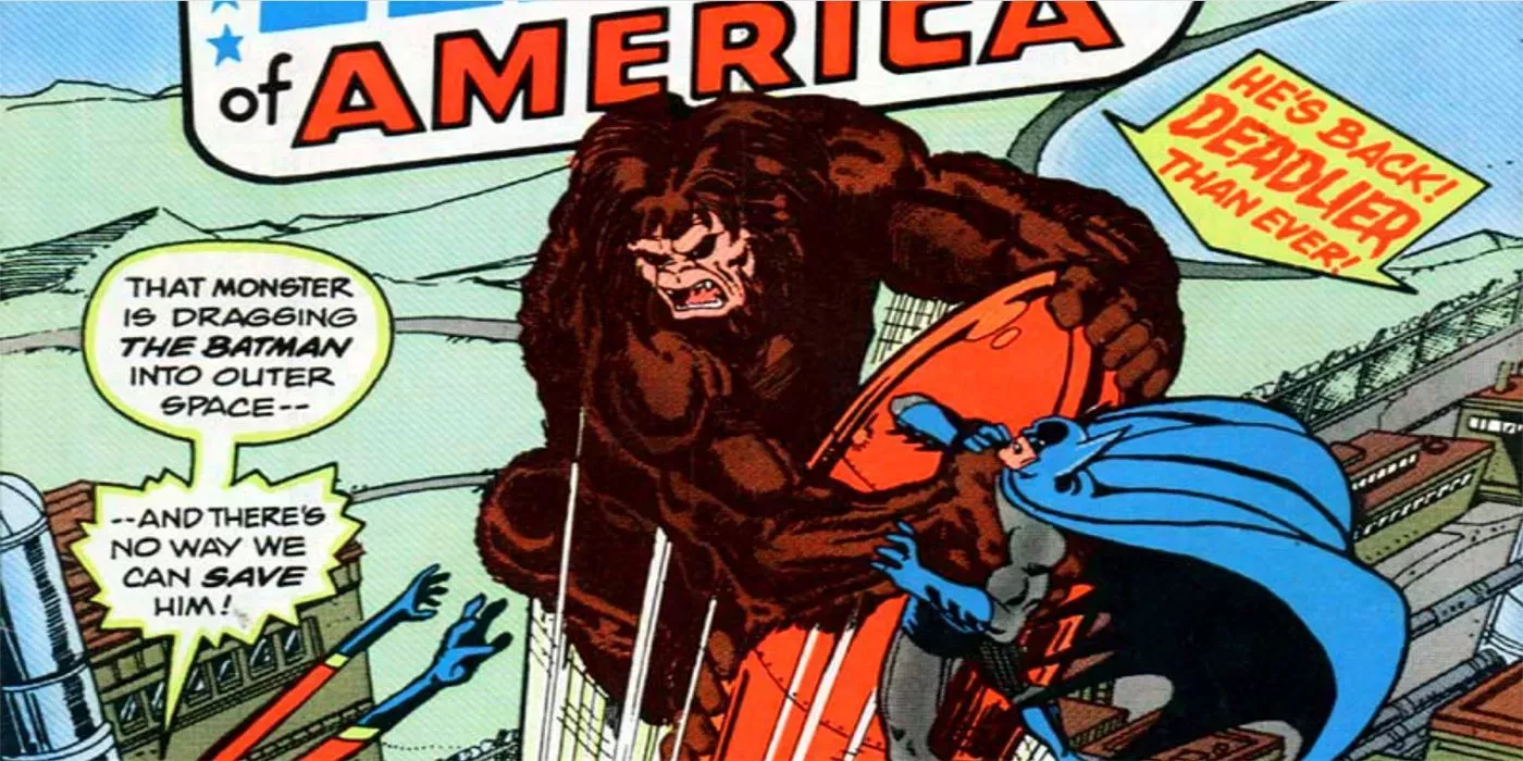 Cuando el nombre de un villano aparece en la portada, los lectores pueden esperar una amenaza severa con grandes apuestas. La portada del legendario George Pérez para el número 186 de la Liga de la Justicia de América desbarató esas expectativas con la desenfrenada tonterÃa del Hombre Peludo. El hombre-bestia con forma de salamandra es un monstruo indestructible, que representa una amenaza real para cualquier ser vivo que se encuentre cerca.