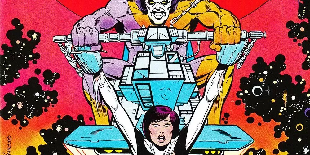 Los Omega Men fueron un equipo espacial creado a principios de los 80 para aprovechar la creciente popularidad del género. La portada del número 3, de Keith Griffin y Mike DeCarlo, es la primera aparición de Lobo. El despiadado villano mira con desprecio a los lectores, colgando a Kalista, un miembro del equipo, de la parte delantera de su moto espacial.