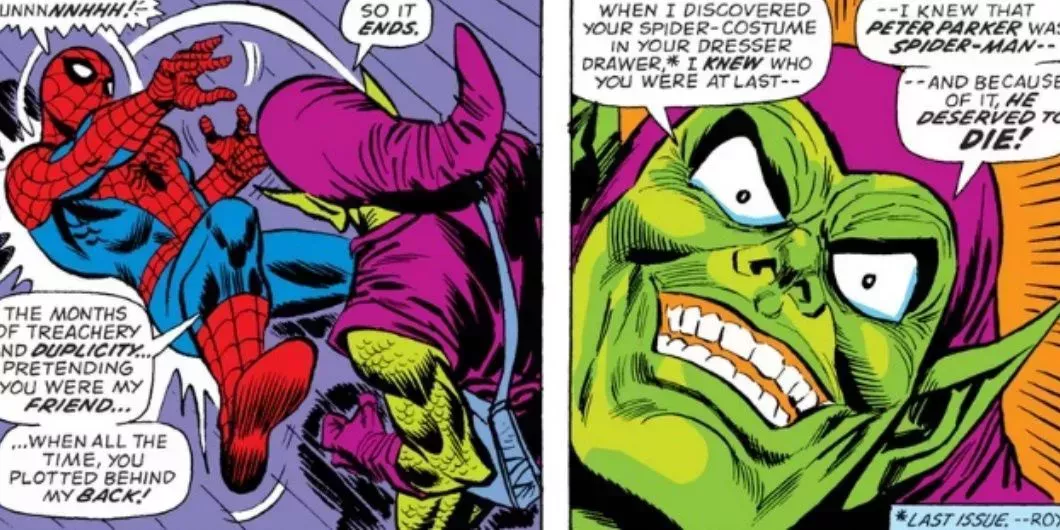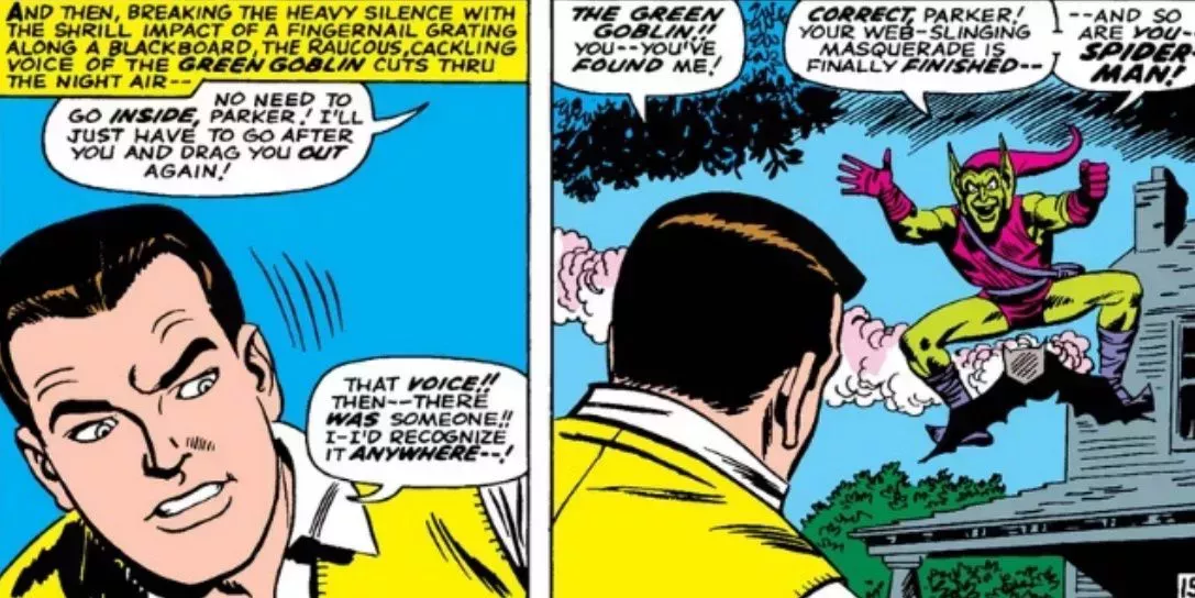 En Amazing Spider-Man #39, el Duende Verde preparó intencionadamente un atraco para que Spider-Man lo frustrara y utilizó un gas especial que apagaba el sentido arácnido de Spider-Man, que de otro modo le alertaría de la presencia del Duende. El Duende Verde siguió a Spiderman desde la distancia y vio cómo el héroe se metía en un callejón y volvía a convertirse en Peter Parker.