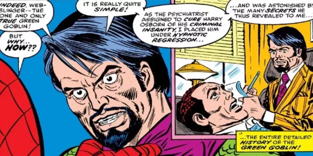 Para lidiar con las muchas tensiones de su vida, Harry empezó a ver al psiquiatra Bart Hamilton. Bajo una regresión hipnótica, Harry recordó todo lo que hizo como el Duende Verde y se lo contó todo a Hamilton, incluida la identidad de Spider-Man.