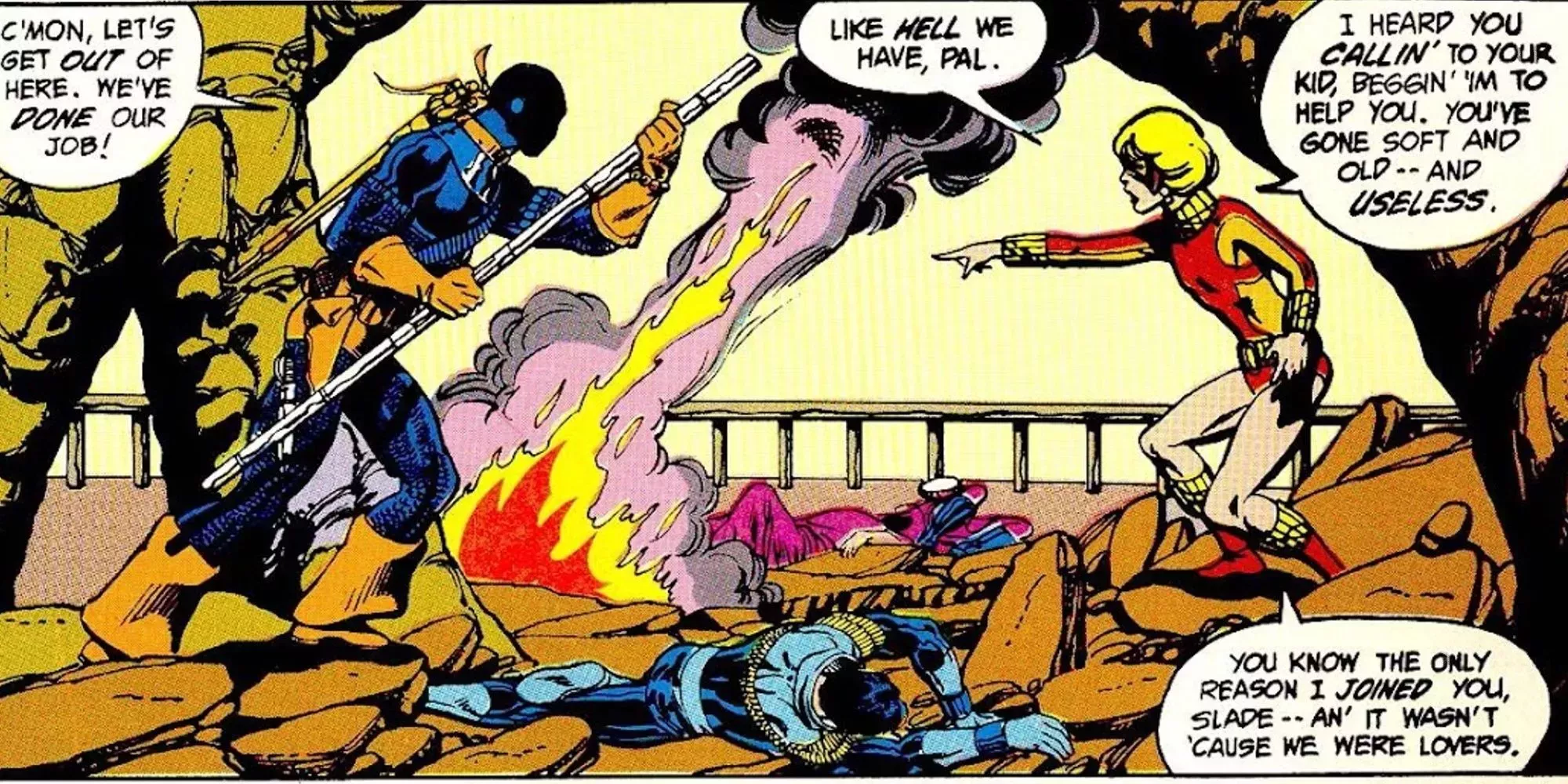 "Tóxico" es una forma enormemente generosa de describir la naturaleza explotadora de la relación de Deathstroke con Terra. Tara Markhov, alias Terra, de quince años, se infiltra en los Teen Titans en nombre de Deathstroke en la historia El contrato de Judas, escrita por Marv Wolfman y dibujada por George Pérez.