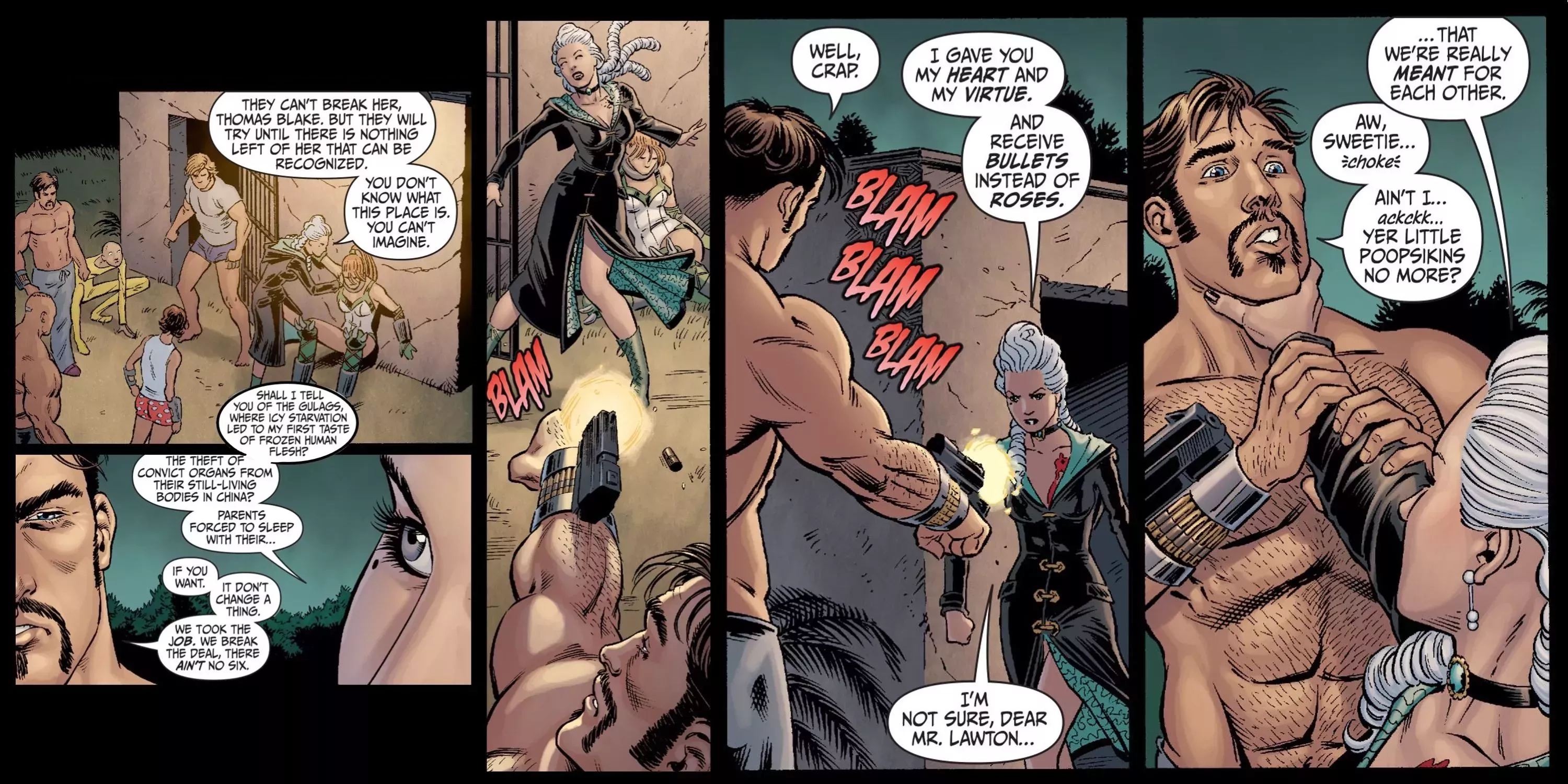 Por eso, es sorprendente que se vuelva contra Jeanette: su amante y compañera de los Seis. Jeanette insiste en salvar a Artemisa de Bana-Migdall de la esclavitud durante una misión, pero Lawton se opone a ella, llegando a dispararle para evitar que rescate a la amazona. Por suerte, Jeanette es casi inmortal, por lo que las balas apenas la afectan, y se deshace rápidamente de Deadshot (aunque asfixiándolo).