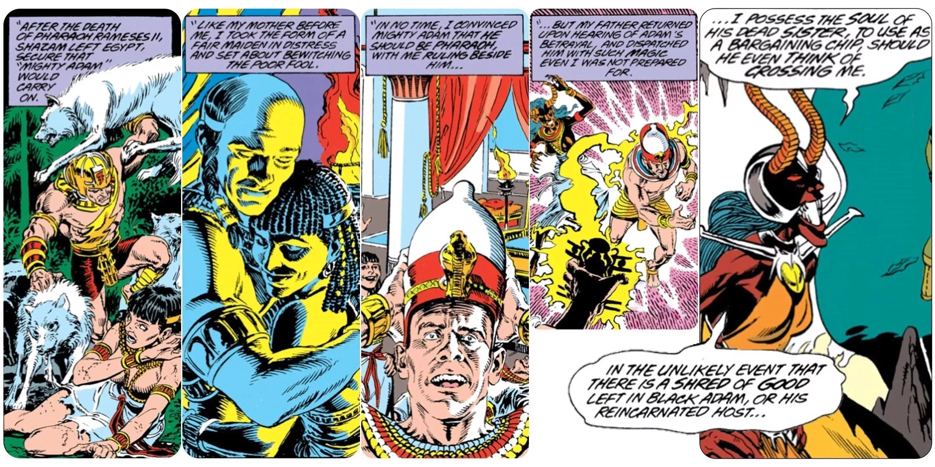 Siglos después, Blaze vuelve a manipular a Black Adam. Por otro lado, Isis, la esposa de Adam en otras líneas temporales, es una influencia positiva y le ayuda a recuperar gran parte de su compasión, incluso después de convertirse en Black Adam.