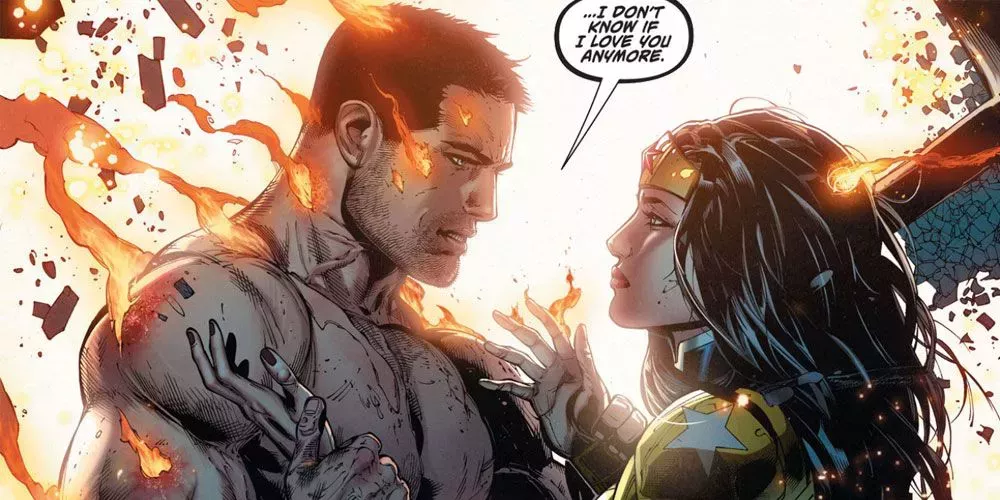 Superman/Wonder Woman #20-22, de Peter Tomasi y Doug Mahnke, mostr贸 la tensi贸n llegando a su conclusi贸n obvia. Al interrogar a Lois Lane y a los otros amigos de Clark, Wonder usa su Lazo de la Verdad. Esto molesta a Superman, que entonces intenta recuperar todos sus poderes haciendo volar una lanzadera de la Liga de la Justicia cerca del sol. Wonder Woman le salva, y 茅l aprovecha el momento para decirle: "Creo que ya no te quiero".