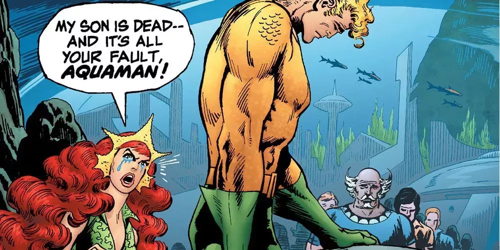 El fracaso de Aquaman llev贸 a Mera a abandonarlo. Le culp贸 de la muerte de su hijo. Black Manta profan贸 la tumba del ni帽o y sigui贸 atacando a Aquaman a nivel emocional. Pasar铆an a帽os antes de que Mera y Aquaman pudieran reparar su matrimonio.