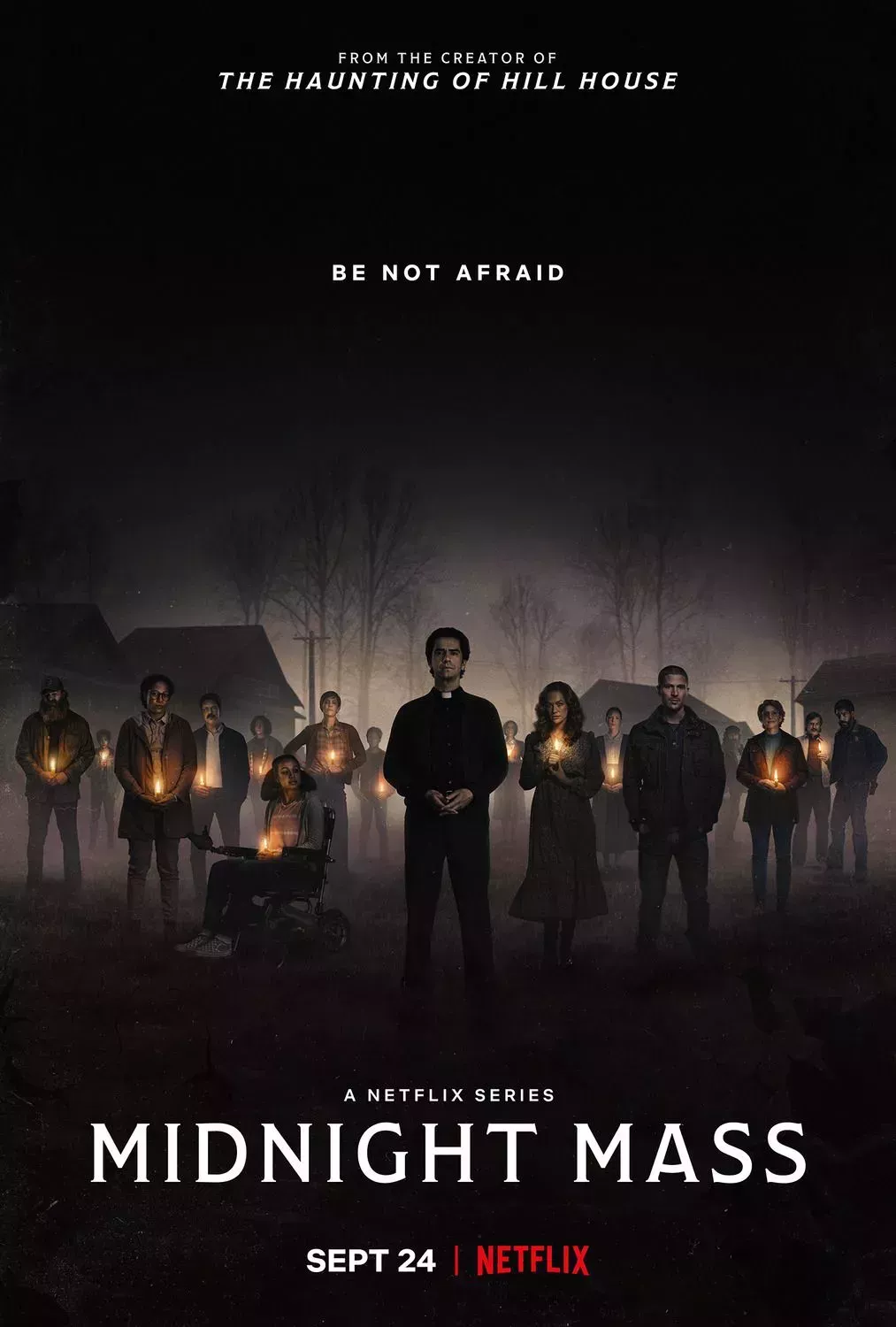 Midnight Mass es una obra de terror fantástica y polifacética. La serie examina la religión de un modo que saca a la luz los elementos de horror que se encuentran en las instituciones religiosas organizadas. La dramática revelación de Midnight Mass es que el nuevo cura de la isla Crockett, el padre Paul, es un vampiro convertido por una monstruosa criatura vampírica que manipuló al cura haciéndole creer que era un ángel. El padre Paul manipula a la congregación realizando falsos milagros y alimentándose de ellos, convirtiéndolos a su vez en vampiros. Esta visión religiosa del vampirismo es audaz e intensifica el terror inducido por el antagonista vampírico.