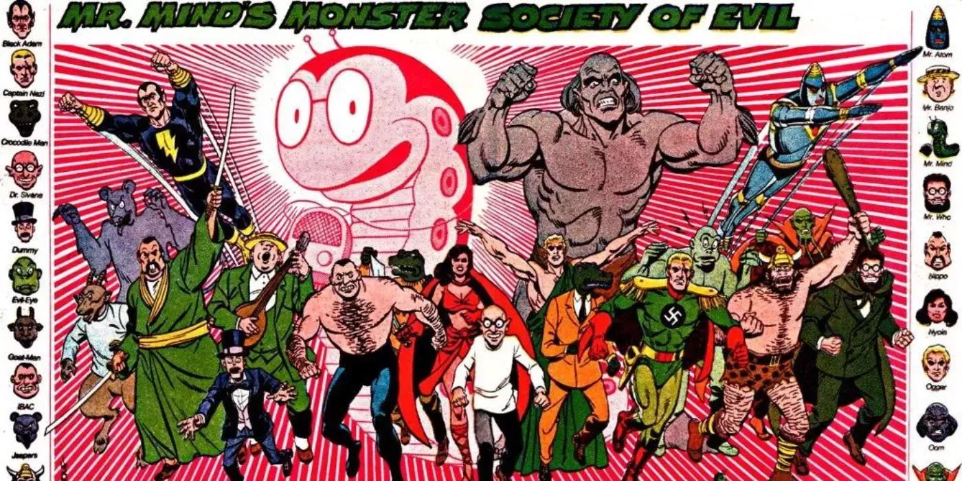 La Sociedad de Monstruos del Mal (MSoE, por sus siglas en inglés) combina la estrafalaria e imaginativa galerÃa de pÃcaros del Shazam de Billy Batson, alias Capitán Marvel. Liderados por el villano gusano Mister Mente, la MSoE ha desafiado a Shazam y a los héroes de DC en varias ocasiones. Seres poderosos como Black Adam los hacen formidables, incluso para Superman.
