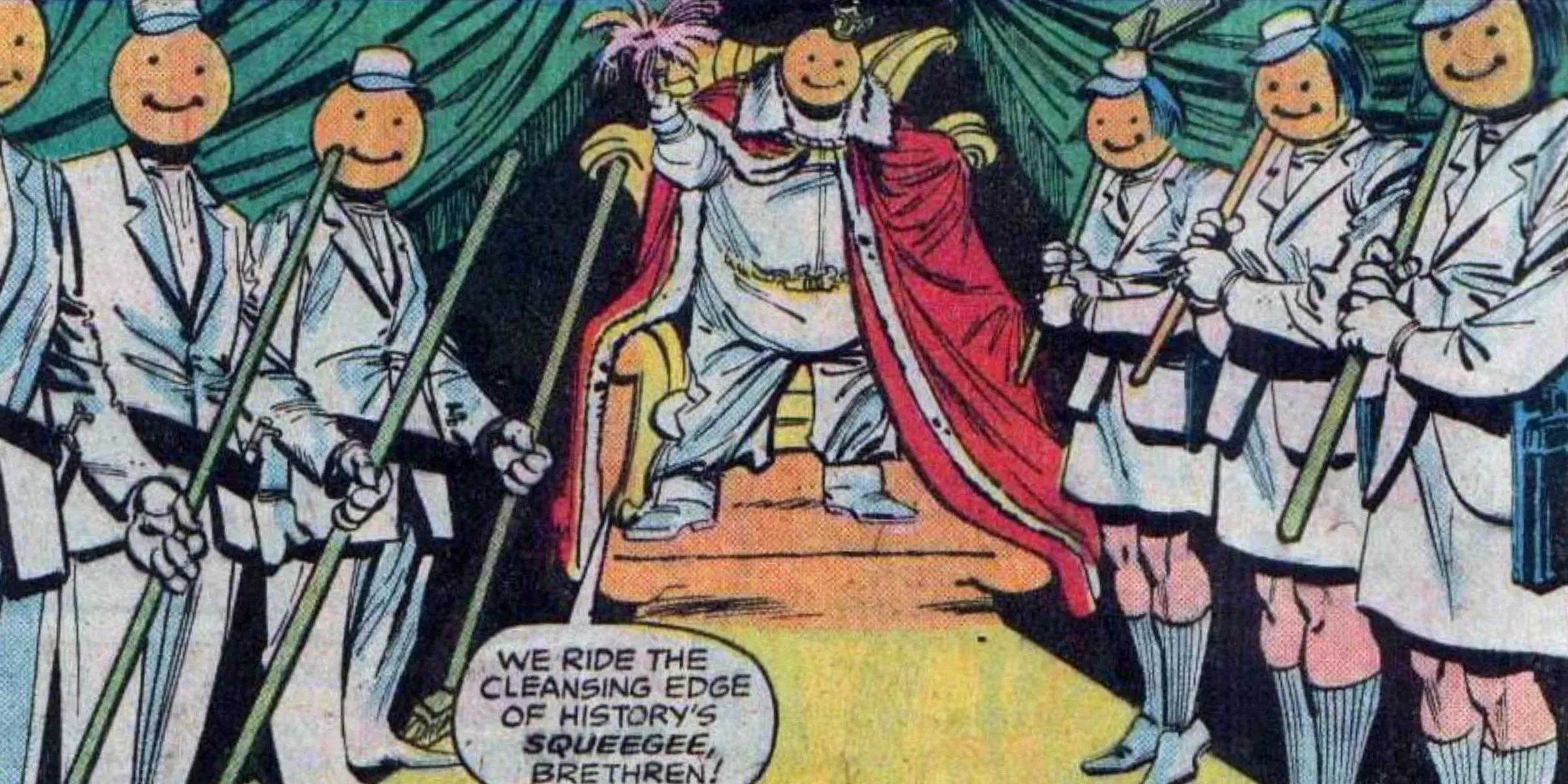 Marvel tiene una tradición de cómics de humor que se remonta a la Edad de Oro de los cómics de superhéroes, con personajes como Silly Seal. Cuando los cómics de la Edad de Bronce encontraron una exitosa cepa de relevancia política, el humor se convirtió en sátira, ya que el escritor Steve Gerber utilizó su creación Howard el Pato para crear un humor en el que nada era sagrado y todo podía ridiculizarse. Este estilo outsider siempre ha formado parte de la historia de Marvel, y dio lugar a la formación de ridículas sociedades secretas.