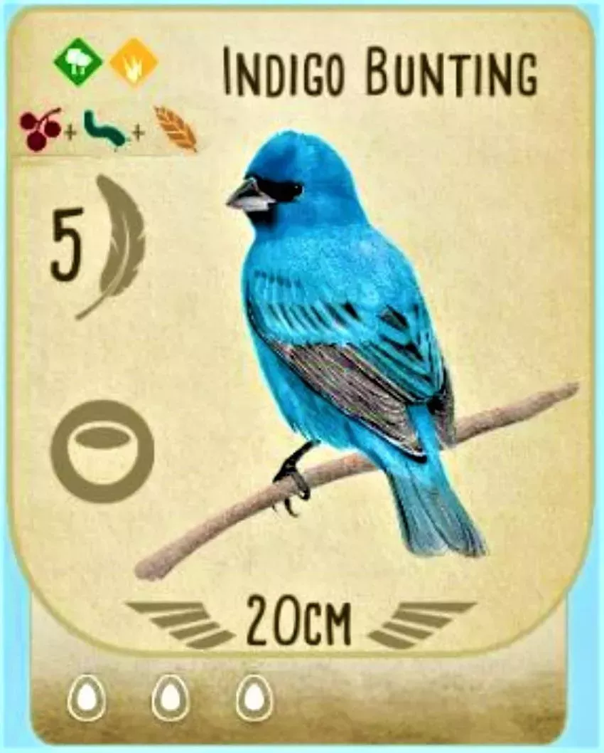 El colorÃn añil deWingspan eligió uno de los tonos de azul más vibrantes de la vida real. El artista de la tarjeta también se aseguró de mostrar las plumas de las alas del pájaro para mostrar el efecto de capas que crean sus plumas blancas y negras. Estáclaro que los diseñadores deWingspan prestaron mucha atención a lo que hace que estos pájaros sean tan bonitos a la vista.