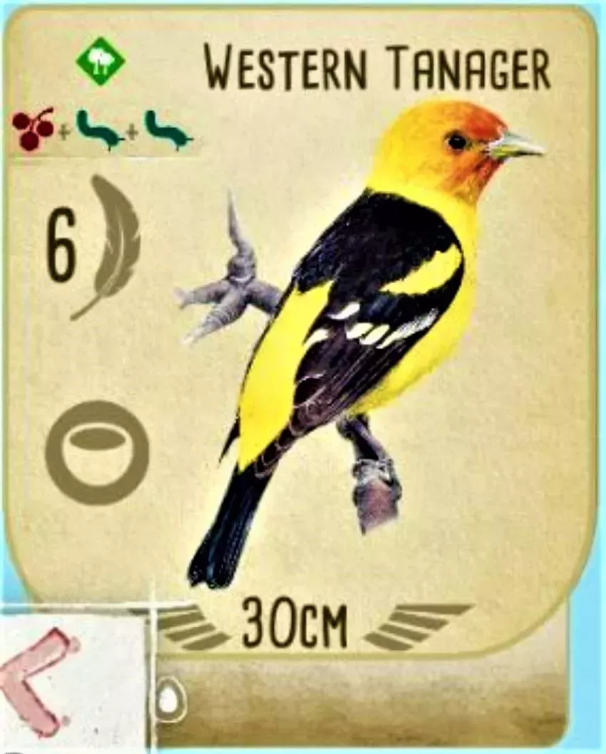 Incluso sin sus caritas rojas, las tangaras occidentales son aves muy bonitas. Sus brillantes plumas amarillas contrastan con las negras, lo que las hace muy interesantes. Wingspan hace un gran trabajo capturando todo lo que hace que las tangaras occidentales sean tan bonitas.