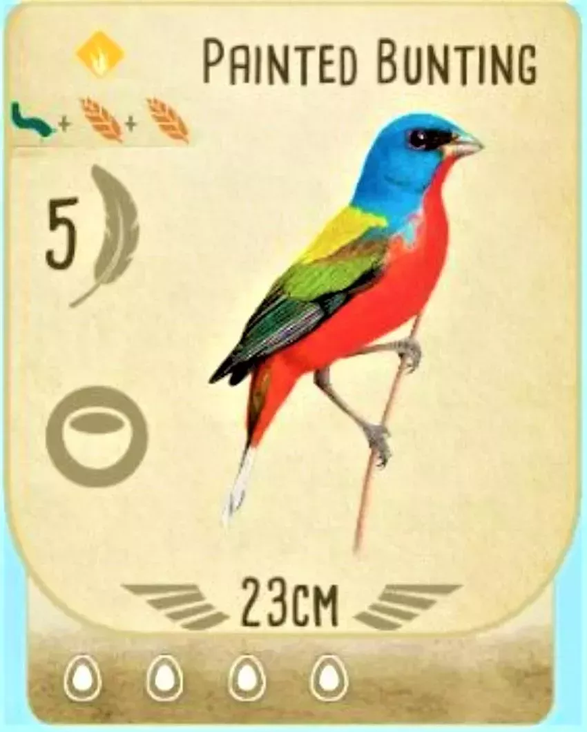 La tarjeta Wingspan del Escribano Pintado hace un gran trabajo mostrando los diferentes colores por los que son conocidos estos pájaros. Al igual que en la naturaleza, la ecléctica mezcla de colores no deberÃa funcionar tan bien juntos, pero de alguna manera lo hacen, lo que resulta en una de las aves más bonitas y la tarjeta más bonita de todo Wingspan.