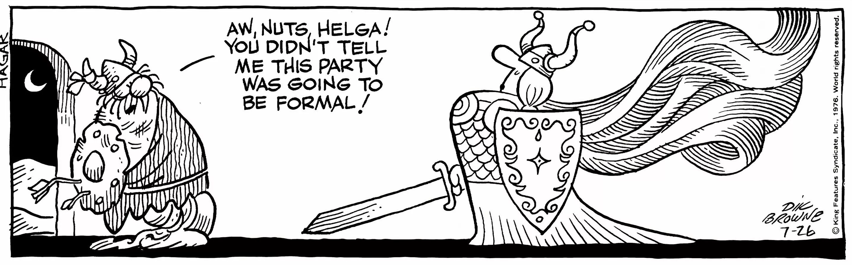 9 El código de vestimenta de una fiesta es muy importanteHelga recibió el memo, pero Hagar no