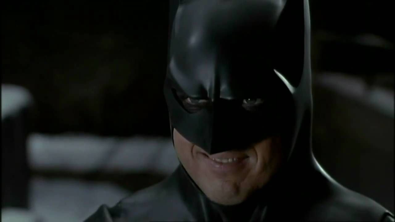 En Batman Returns, durante la escena en la que Batman se enfrenta a la Banda del Triángulo Rojo, desactiva una bomba en el pecho de un criminal antes de sacarlo de la pantalla -con una sonrisa alegre, nada menos- y se aleja como el hombre más malo del planeta mientras el malo explota en la distancia.