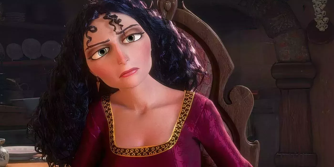 Madre Gothel secuestró a Rapunzel cuando aún era un bebé, con la esperanza de utilizar la magia contenida en su pelo para mantenerse joven. Crió a la niña, la mantuvo prisionera y llegó a amarla de una forma muy tóxica. Su actriz de doblaje, Donna Murphy, creía que era amor de verdad, como declaró a Collider: