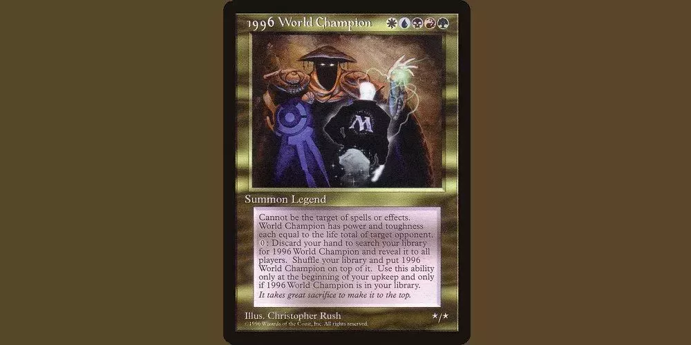 Tom Chanpheng, el ganador de "Campeón del Mundo de 1996", ganó su partida final contra todo pronóstico con una baraja debilitada debido a reglas técnicas. A pesar del triunfo, Chanpheng vendió la carta en 2001 a un coleccionista privado por 17.500 dólares. Actualmente, la carta está encerrada en un trofeo acrílico y está técnicamente prohibida en el juego.