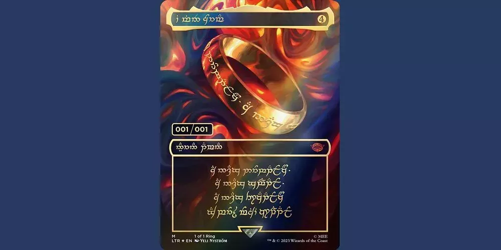 Una de las cartas más raras de todos los tiempos de Magic: The Gathering es "El Anillo Único", que saldrá a la venta el 23 de junio de 2023. Aunque habrá algunas variantes diferentes de la carta, solo se imprimirá una versión foil en el Discurso Negro de Sauron. "El Anillo Único" es la versión en cartas de El Anillo de Poder de El Señor de los Anillos y es una entrada muy codiciada para la colección cruzada "Cuentos de la Tierra Media" con Magic: The Gathering.