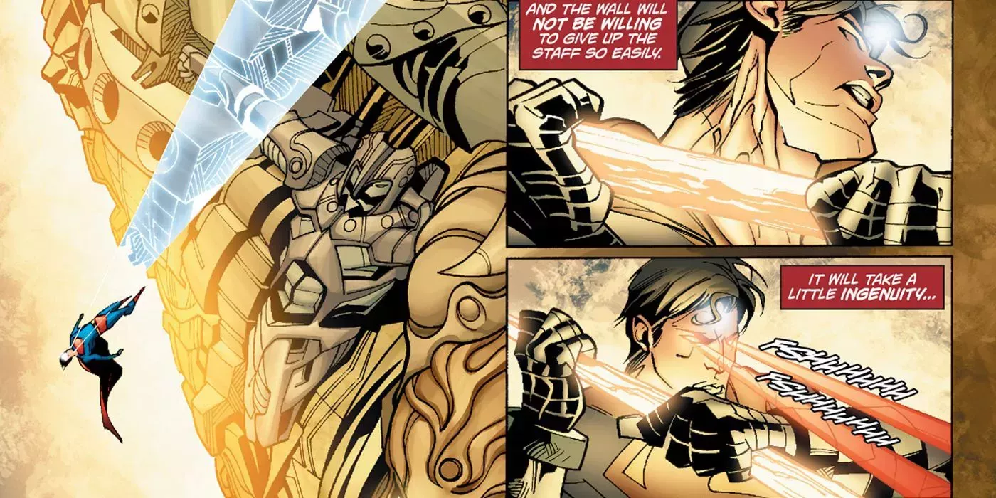 11 Fue capaz de retirar el báculo de Highfather del muro de la fuenteSuperman/Batman (Vol. 1) #41, de los escritores Alan Burnett, el dibujante Dustin Nguyen, el entintador Derek Fridolfs, el colorista Randy Mayor y el dibujante Rob Leigh