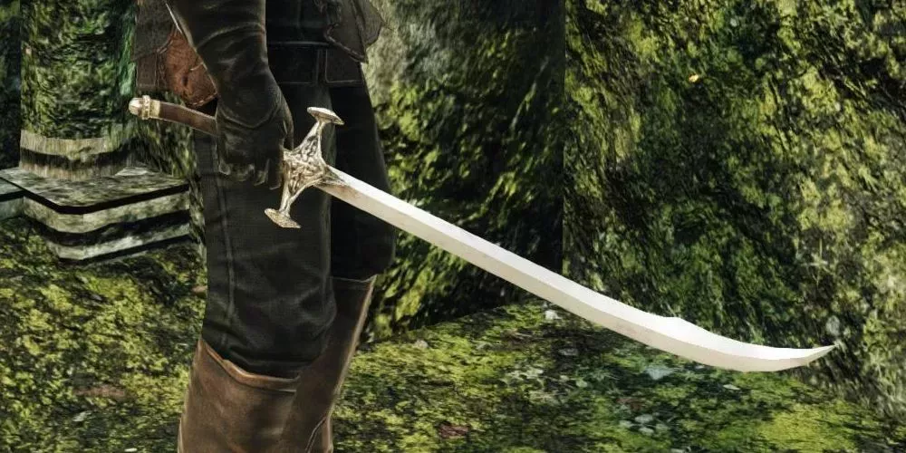 Otra arma inicial que muchos jugadores disfrutan mucho es la cimitarra, que se encuentra en la clase inicial Wanderer, que requiere mucha destreza. Se trata de una espada curva increíblemente rápida, capaz de golpear con rapidez sin que al jugador le cueste mucho aguante. A pesar de su velocidad, su daño también es bastante competitivo.
