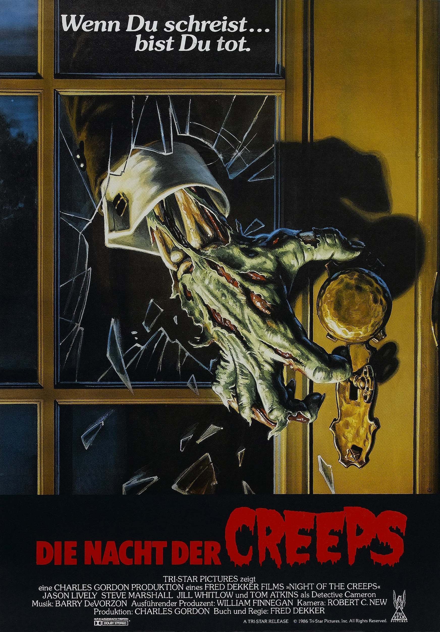 - ‘Night of the Creeps’: O ‘El terror llama a su puerta’, como aquí la conocimos. Dirigida por Fred Dekker, el mismo de la fantástica ‘Una pandilla alucinante’, nos encontramos ante un homenaje en clave de comedia a las películas de terror de todas las épocas, desde la década de los cincuenta hasta los ochenta, donde nos encontraremos parásitos extraterrestres, psicópatas asesinos y, sobre todo, muertos vivientes. Con uno de los personajes más carismáticos que podamos encontrar en estas películas interpretado por Tom Atkins, ‘Night of the Creeps’ nos deja líneas de guión inolvidables y pequeños pero agradecidos guiños para los más duchos en el género.