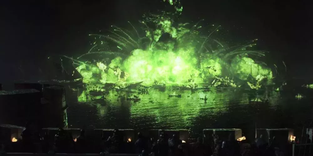 Una gran escena de Juego de Tronos fue la explosión del incendio forestal al final de la segunda temporada. En Juego de Tronos, la Batalla del Aguasnegras fue una gran victoria para los Lannister, que, por aquel entonces, eran villanos a los que los fans adoraban odiar. Tyrion fue la única excepción, y fue la mente detrás de la enorme explosión de Fuego Salvaje que pilló desprevenida a la flota de Stannis. En la memorable escena, Davos y sus hombres observan ansiosos un misterioso barco que se acerca, solo para descubrir demasiado tarde que está cargado de Fuego Salvaje.