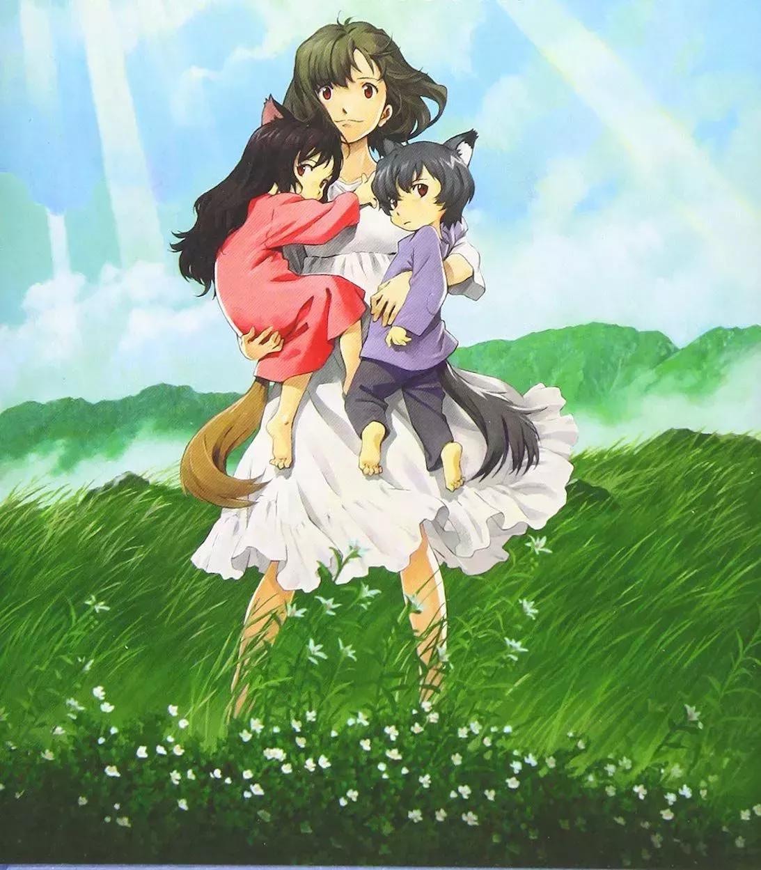 Técnicamente,Wolf Children es más una historia de madurez para los niños, Yuki y Ame. Dicho esto, toda la historia de esta película está envuelta y llevada por el amor entre Hana y Wolfman. Un fatídico día, Hana conoce a un misterioso hombre que es, de hecho, una especie de hombre lobo. Ambos se enamoran, tienen hijos y un día Wolfman aparece muerto. Sus dos hijos, Yuki y Ame, han heredado las habilidades de su padre y se han convertido en los más adorables medio lobos.