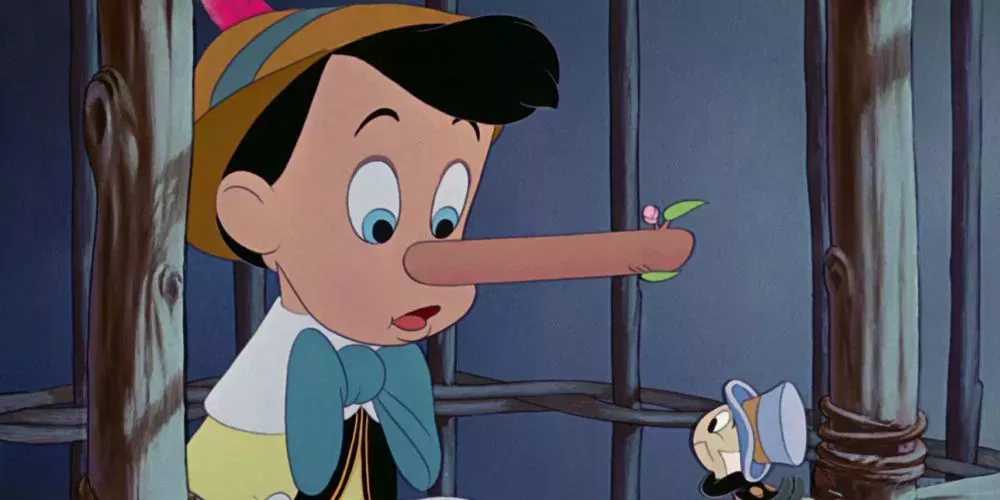 A lo largo de Pinocho, la marioneta titular se encuentra con varias fiestas que representan tentaciones mundanas. Durante estas aventuras, Pinocho miente, fuma, bebe, es encarcelado, vendido como esclavo y es tragado por una ballena. Aunque ninguna de estas experiencias es demasiado gráfica, su oscuridad supera con creces su clasificación G. Aun así, esta versión consigue ser más ligera que su material de origen. En la novela original, Pinocho mata a Pepito Grillo con un martillo al principio del libro.