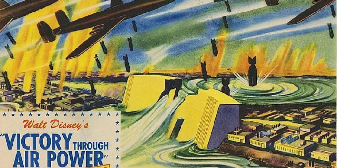 8 Victoria por aire Victory Through Air Power no disimulaba el mensaje que la película transmitía a los espectadores. La película comienza como propaganda animada de lo que sus creadores consideraban la forma más eficaz de salir adelante en la Segunda Guerra Mundial. Con el tiempo, la película pasa a la acción real y vuelve a presentar estas ideas.