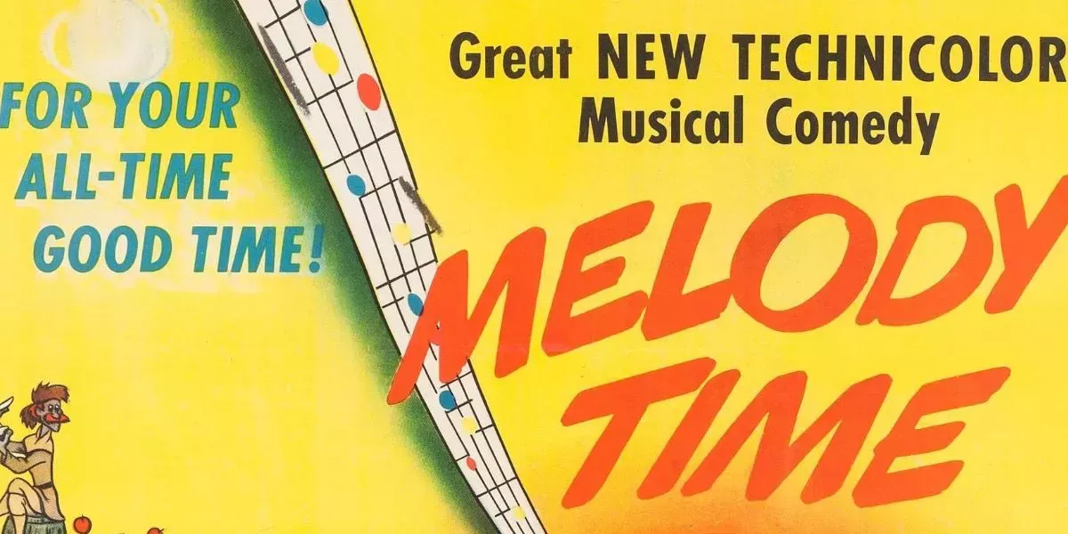 Cada viñeta es una narración autónoma, en la que intervienen conceptos como ensoñadoras batallas de abejorros, tiernos recitales de poemas y legendarios vaqueros. Melody Time presenta a varias estrellas emblemáticas de la época, desde Roy Rogers y Dennis Day hasta Buddy Clark y Frances Longford. En consecuencia, las viñetas se dividieron en 7 cortometrajes.